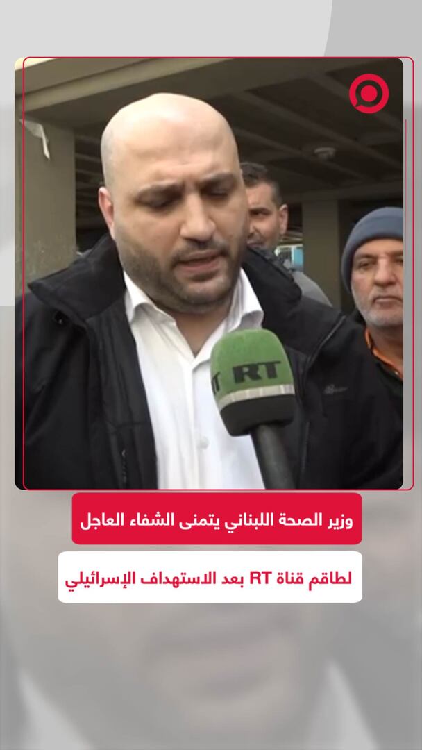 Play/Pause Mute/Unmute وزير الصحة اللبناني يتمنى الشفاء العاجل لطاقم RT بعد الاستهداف الإسرائيلي Save post Share Facebook X VK.com Telegram
