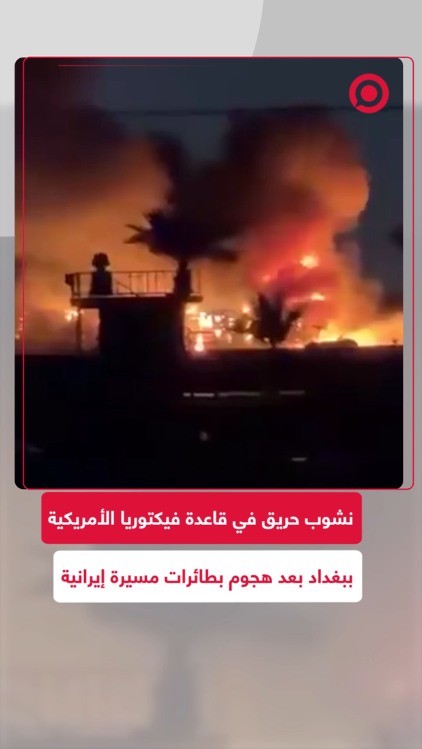 Play/Pause Mute/Unmute نشوب حريق في قاعدة فيكتوريا الأمريكية ببغداد بعد هجوم بمسيرات إيرانية Save post Share Facebook X VK.com Telegram