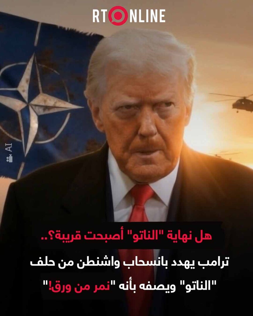 Play/Pause Mute/Unmute إحباط ترامب من "النمر الورقي" يهدد بتفكك حلف "الناتو" ونهايته بعد رفض دعم حرب إيران Save post Share Facebook X VK.com Telegram
